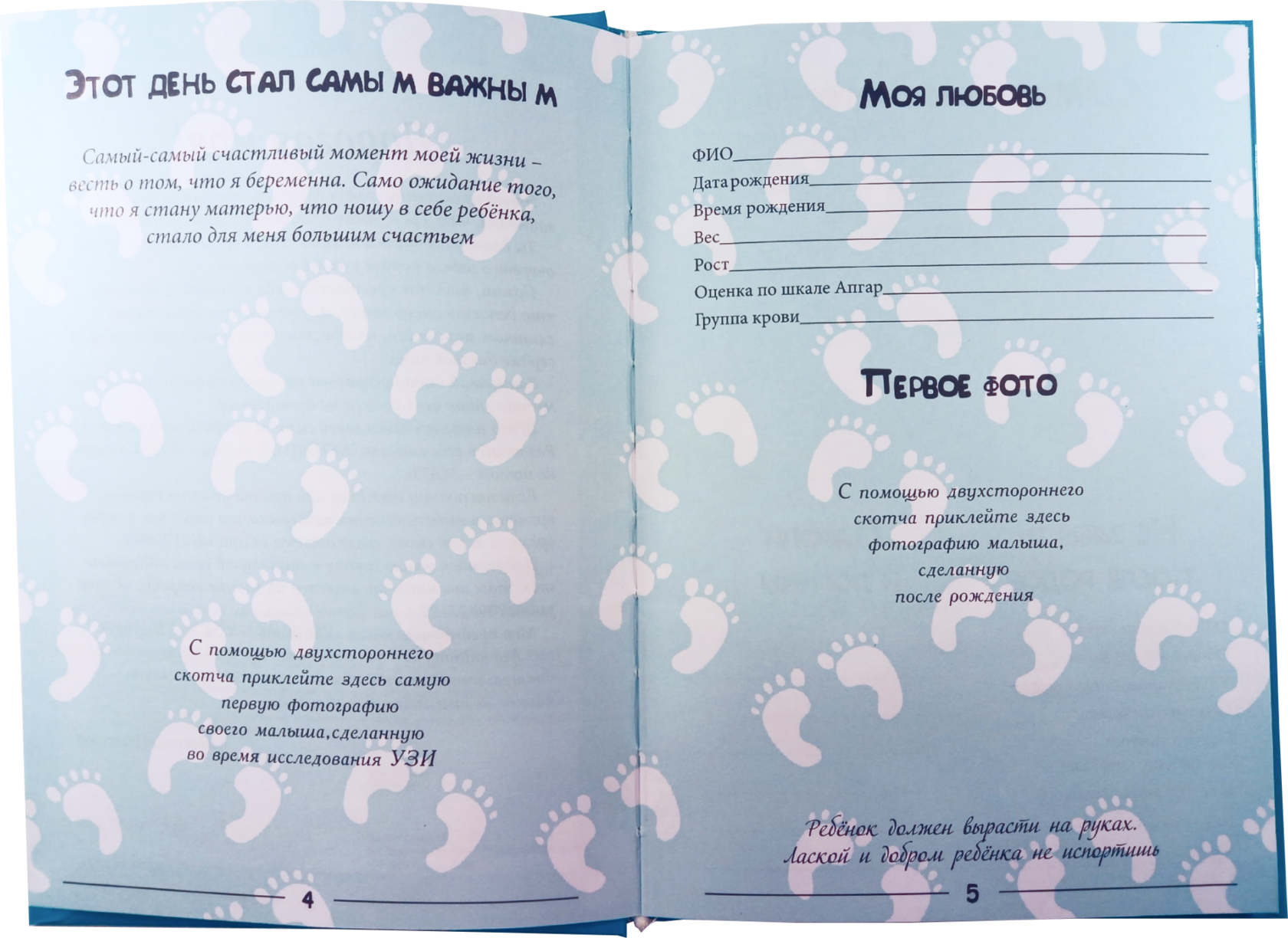 Каждый месяц можно вклеивать фото малыша, записывать рост, вес и смешные моменты в развитии.